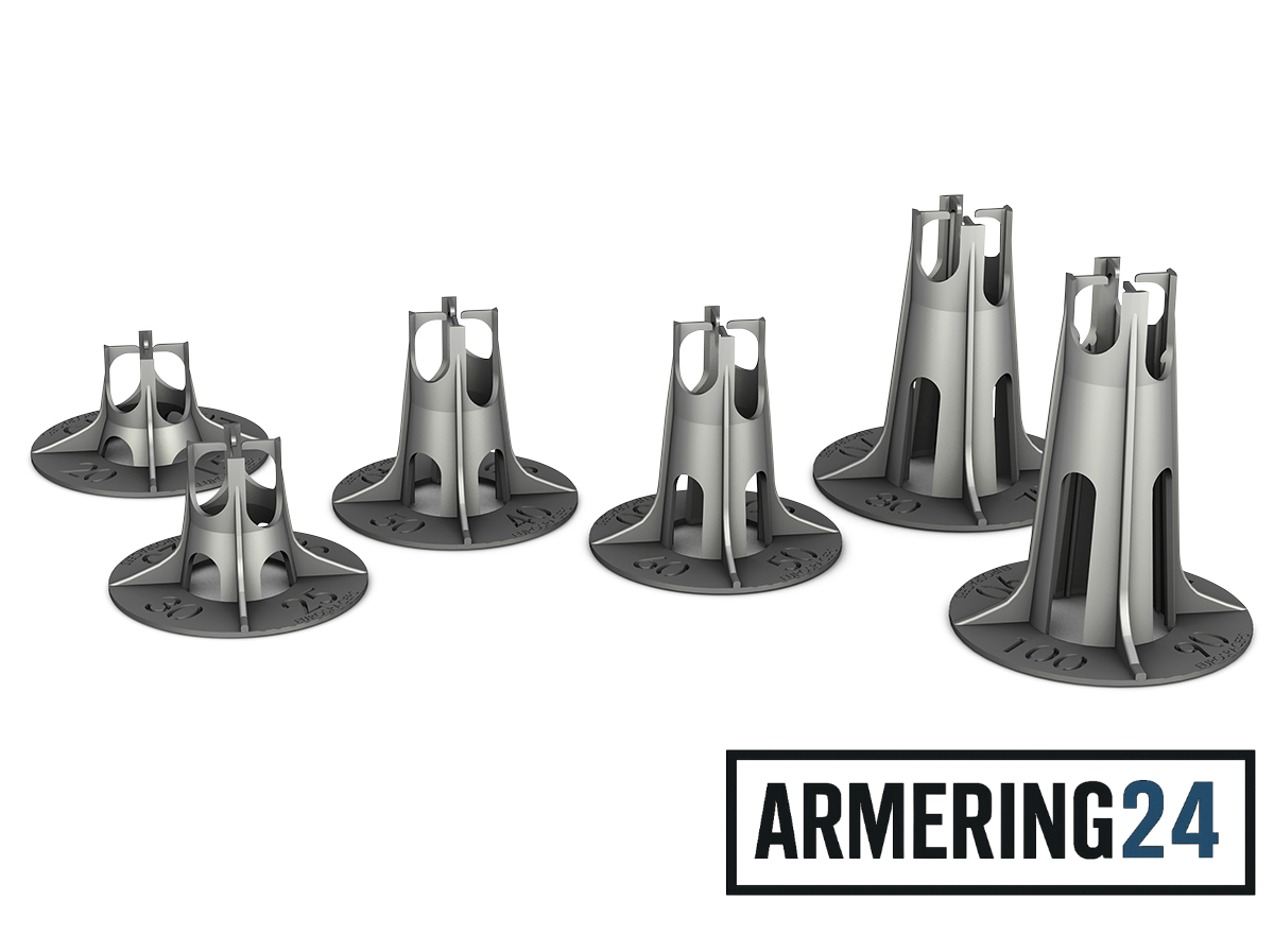 Plastdistanser för armeringsnät och armeringsjärn. Används för att säkerställa korrekt täckskikt vid gjutning av platta på mark, golv och mindre fundament.